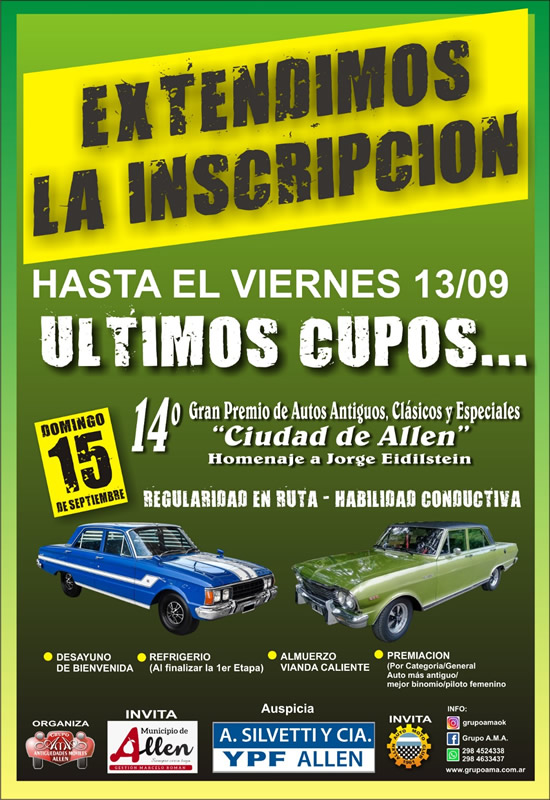 Este Domingo 15 se pone en marcha el 14° Gran Premio de Autos Antiguos, Clásicos y Especiales "Ciudad de Allen" - Homenaje a Jorge Eildistein